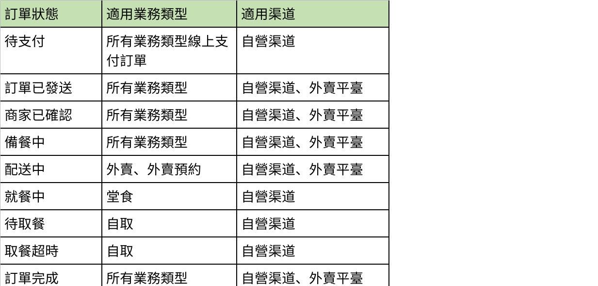 28. Order Status Settings: Set the order status flow mode and time. Currently, the following order statuses are available. The order status flow has different setting times for different business types: