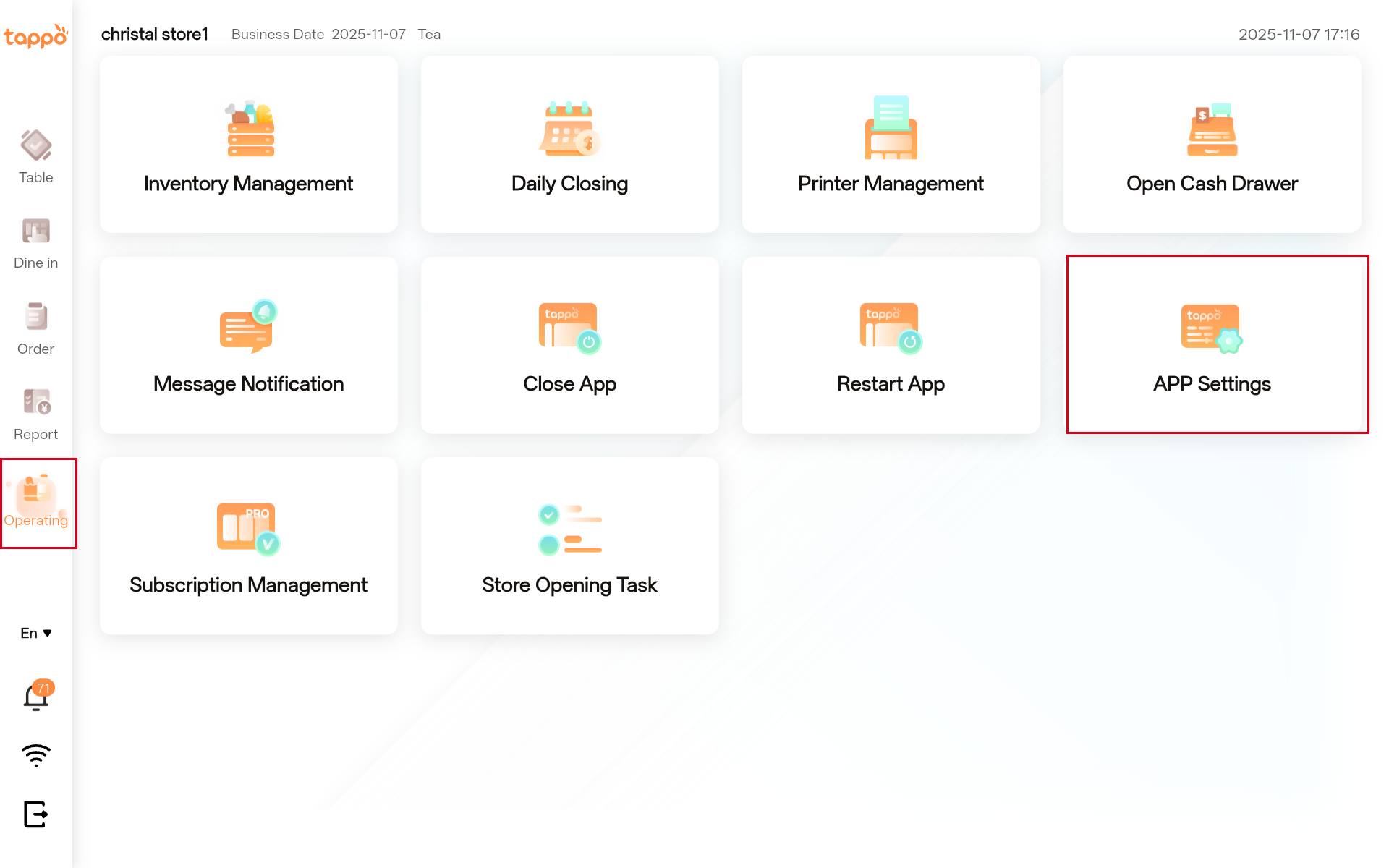 5.1 Path: Operating -> App Settings