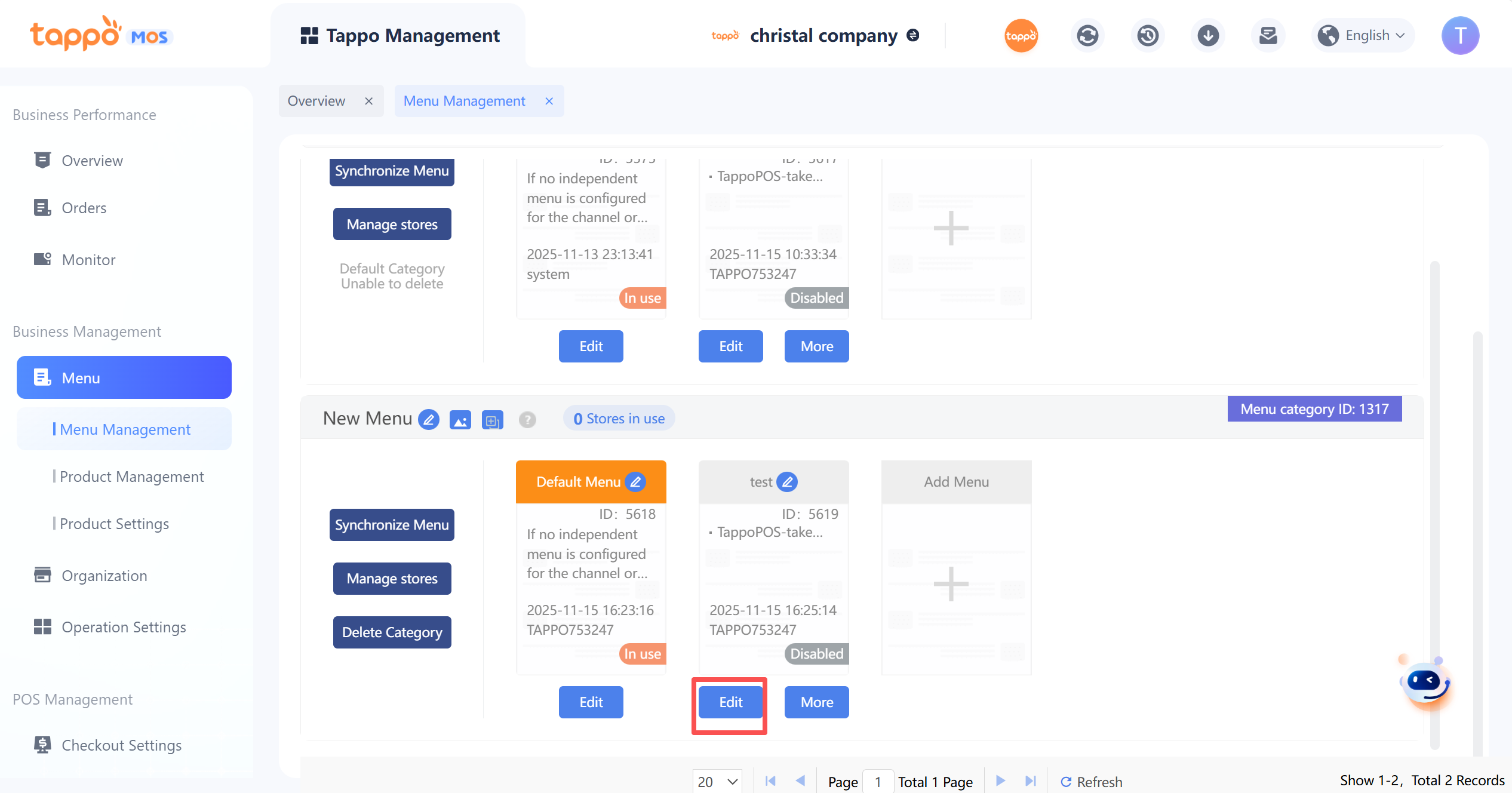 3. 在餐單分類中,點擊餐單下方的【編輯】按鈕,進入編輯餐單頁面。